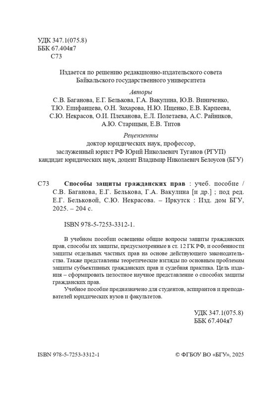 Цель издания – сформировать целостное научное представление о способах защиты гражданских прав.