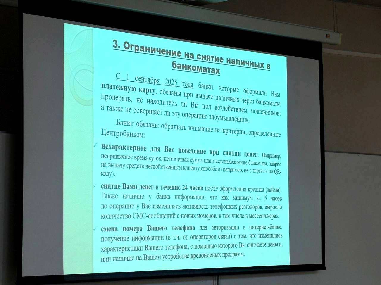 Начальник второго отдела управления по надзору за уголовно-процессуальной и оперативно-розыскной деятельностью Инга Бураева рассказала о способах противодействия IT – преступности, чего стоит опасаться при совершении банковских операций, о нововведениях и законодательстве и «лёгком заработке». Ведь он может повлечь не только уголовную ответственность, но и длительные сроки лишения свободы.