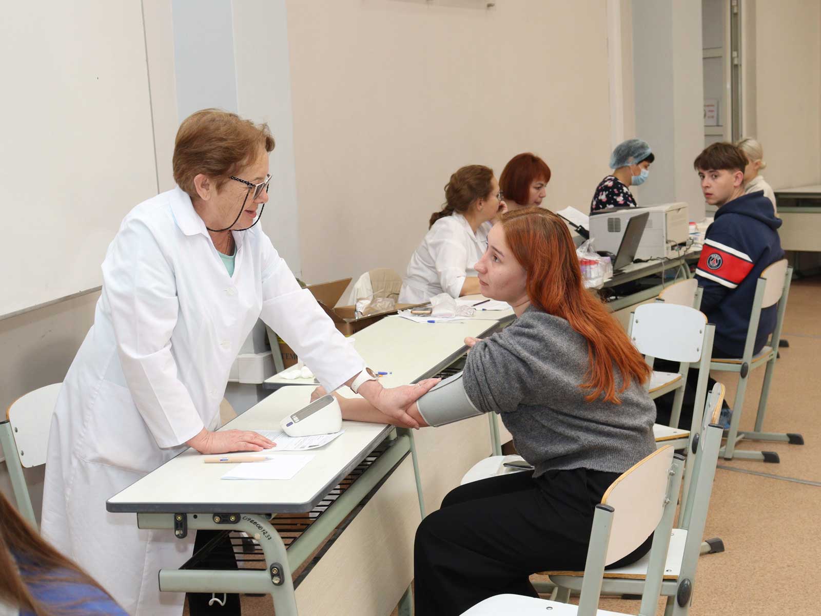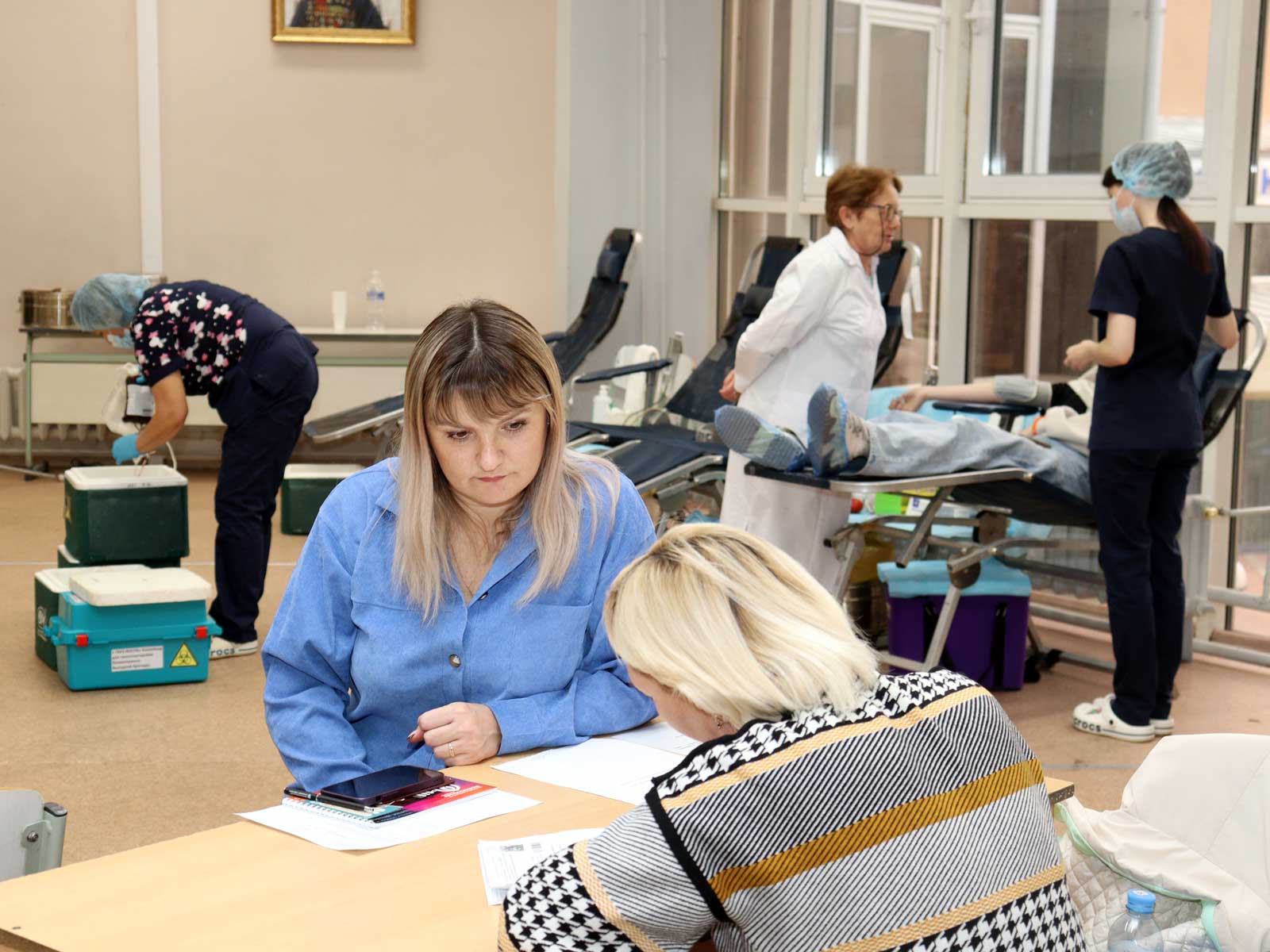 Заполнение необходимых документов, анализ уровня гемоглобина в крови,