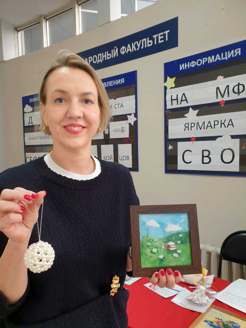 Кроме выпечки и чая гостям ярмарки предлагались изделия, изготовленные своими руками. Это были украшения, композиции из мягких игрушек, картины, выполненные в разных техниках.