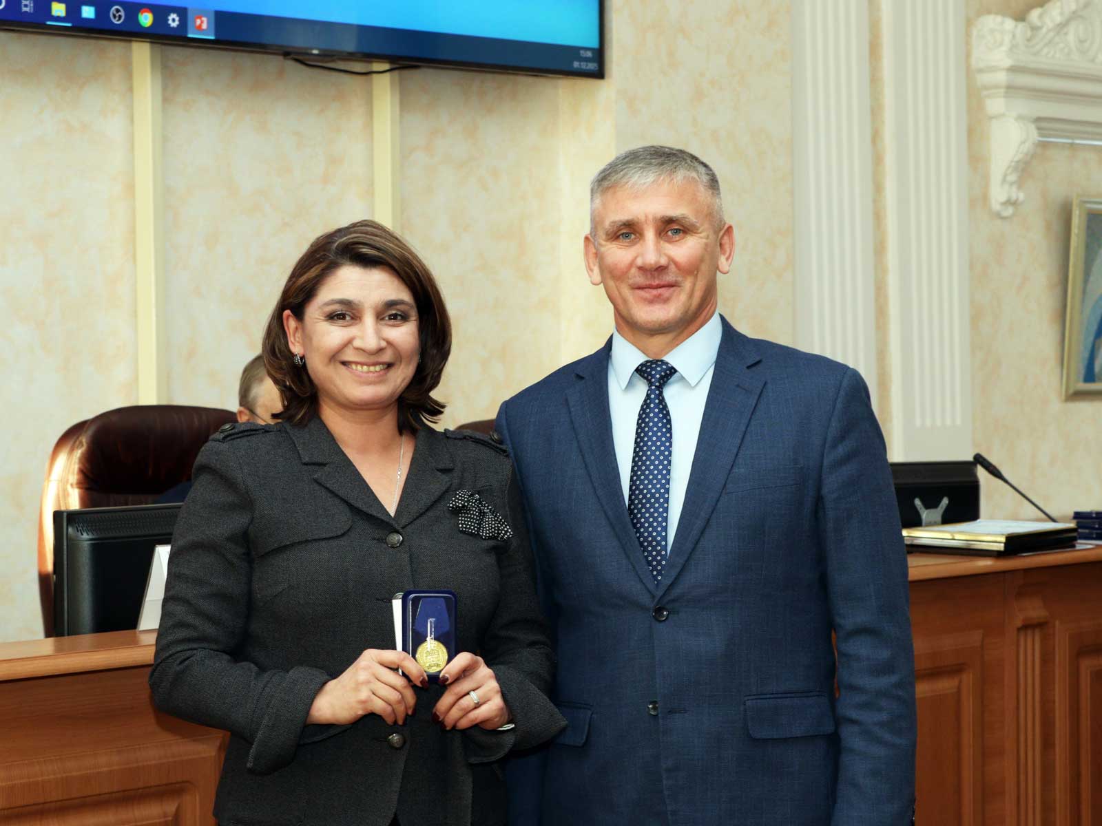 На заседании тринадцати работникам были вручены юбилейные медали. Первыми их