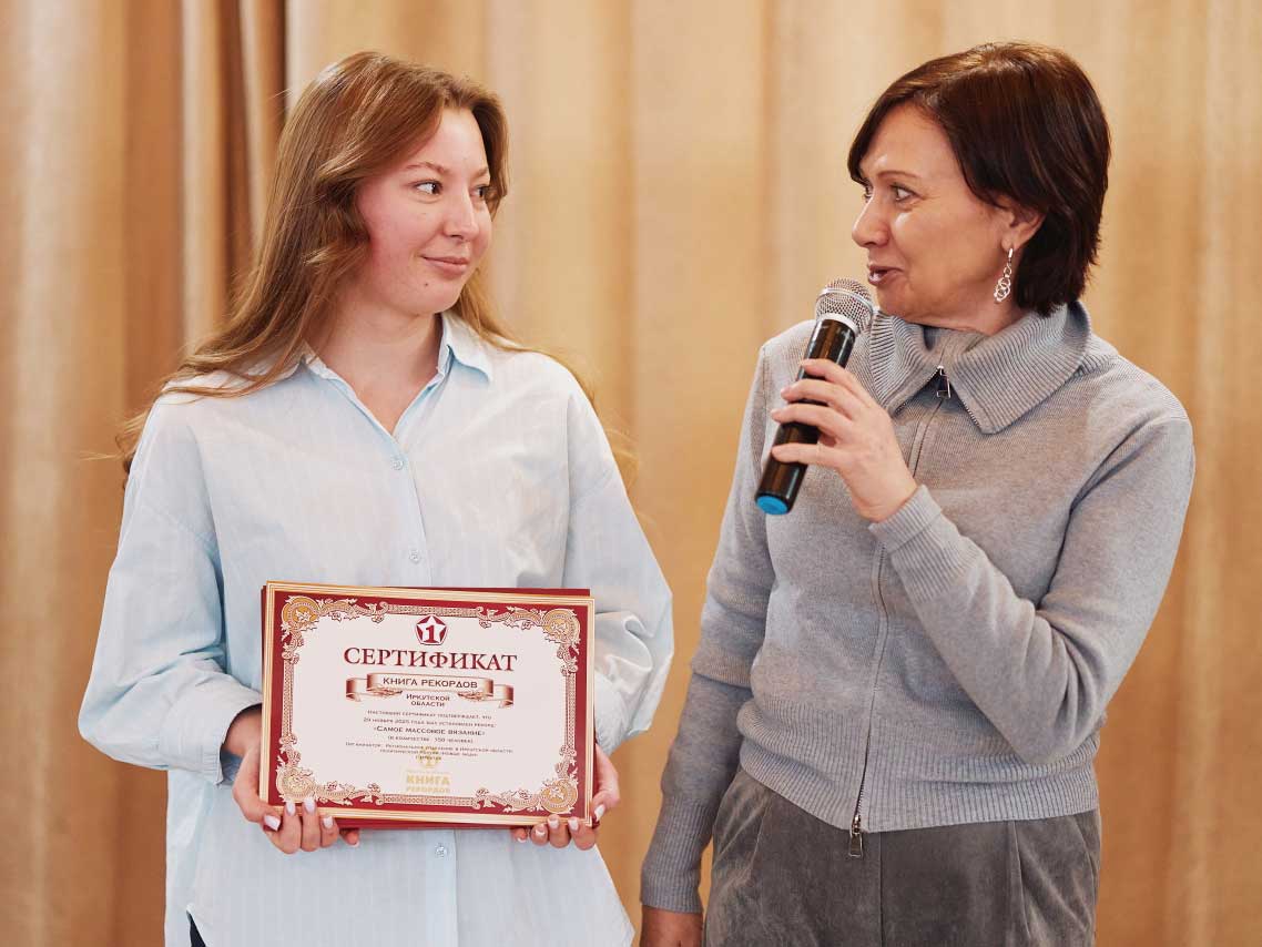 В акции приняли участие 150 иркутян. Был даже установлен региональный рекорд по самому массовому вязанию, зафиксированный в Книге рекордов Иркутской области.