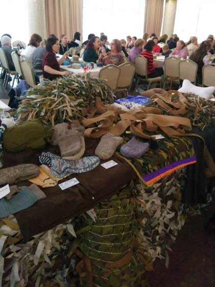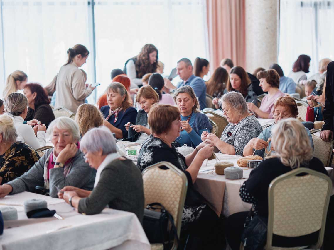 В зале гостиницы «Иркутск» участники плели маскировочные сети, вязали пояса,