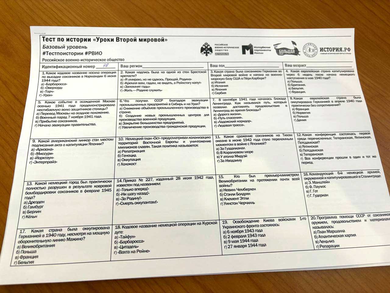 Историки приготовили 40 вопросов и несколько вариантов ответов на них.