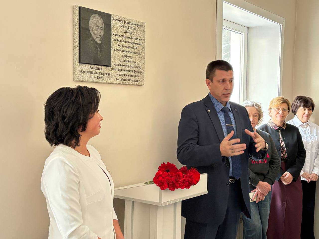 факультета БГУ, профессоре Аюржане Дылгыровиче Аюшиеве, у кафедры установлена