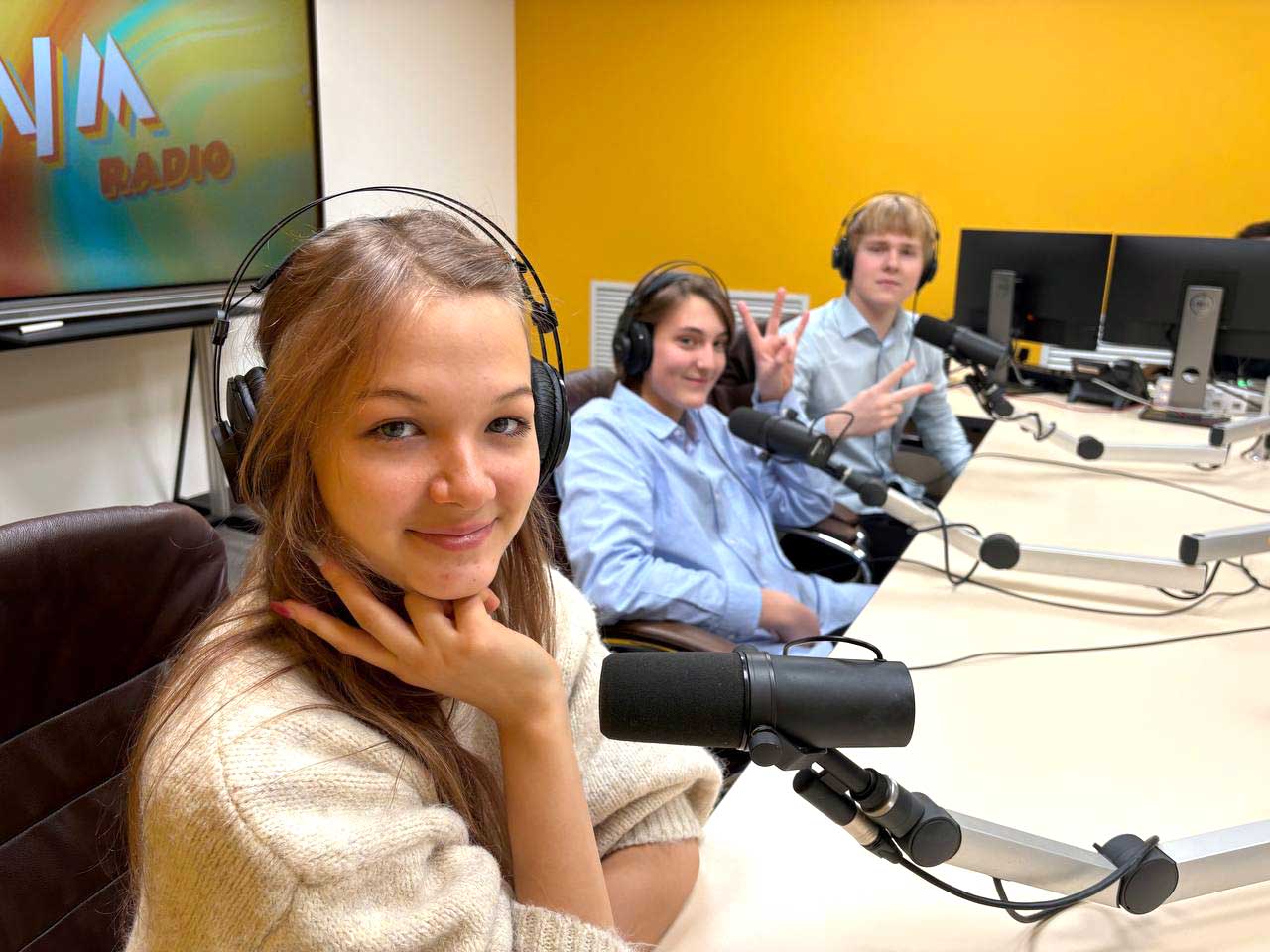 попробовать себя в роли телеведущего в студии Медиацентра. Часть школьников в