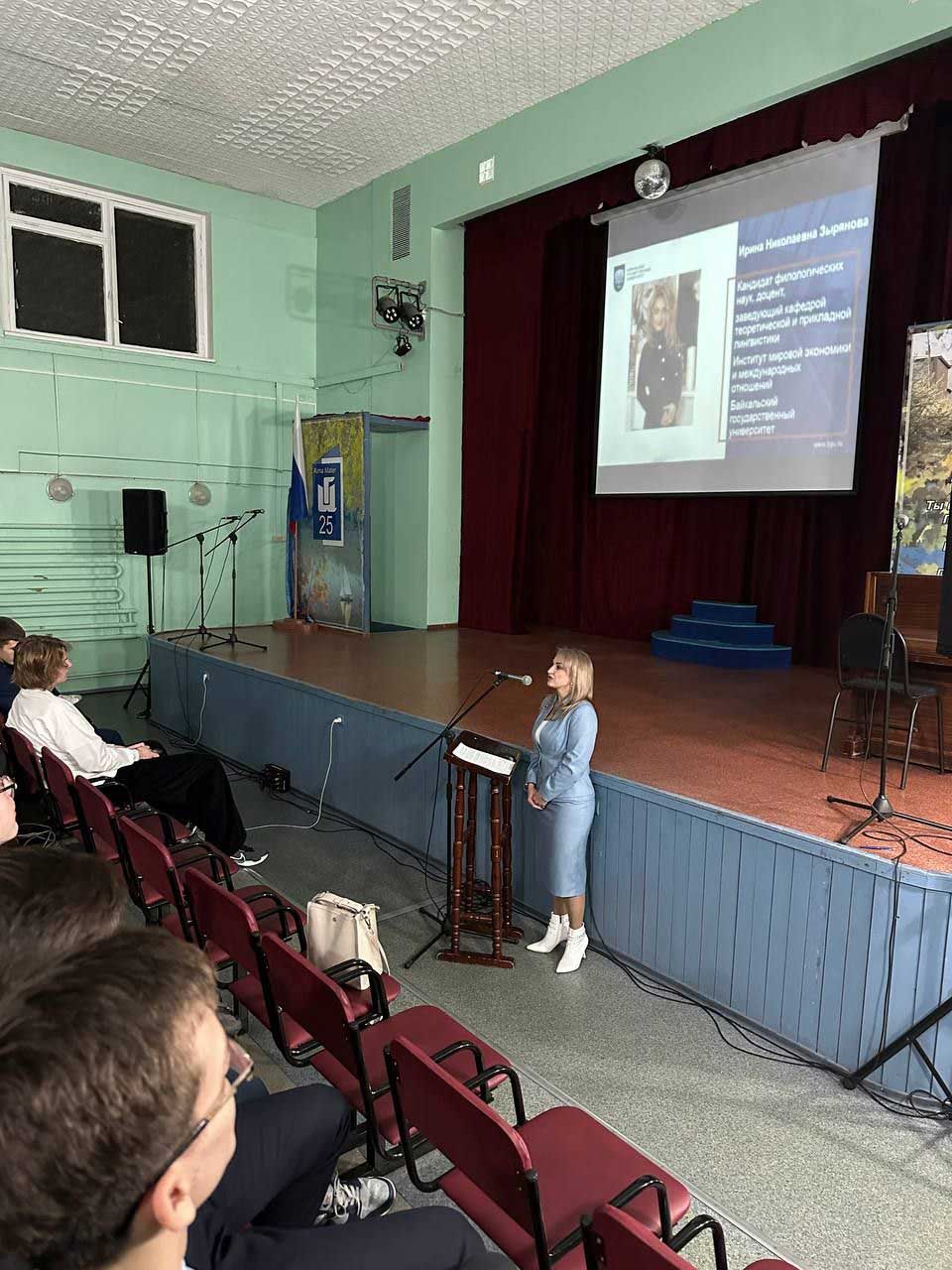 Как и чему учатся в БГУ, где проводят досуг в стенах вуза, а главное – где смогут работать после окончания обучения - об этом узнали иркутские школьники во время встречи с преподавателями кафедр ИМЭМО.