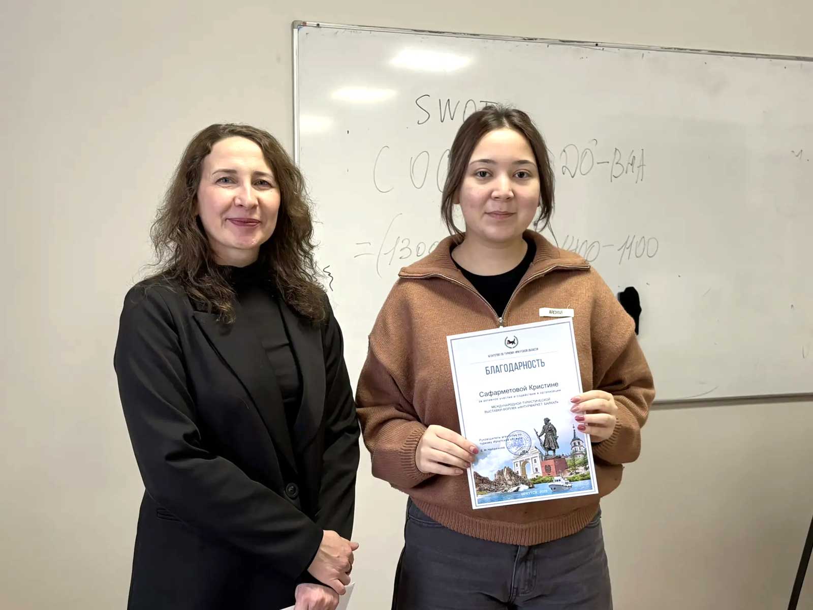 В институте мировой экономики и международных отношений (ИМЭМО) прошёл семинар «Контрольно-надзорная деятельность в туризме». Встреча началась с торжественного момента: сотрудники Агентства по туризму Иркутской области вручили студентам 3-го и 4-го курсов благодарственные письма за вклад в развитие регионального туризма и продвижение имиджа Приангарья.