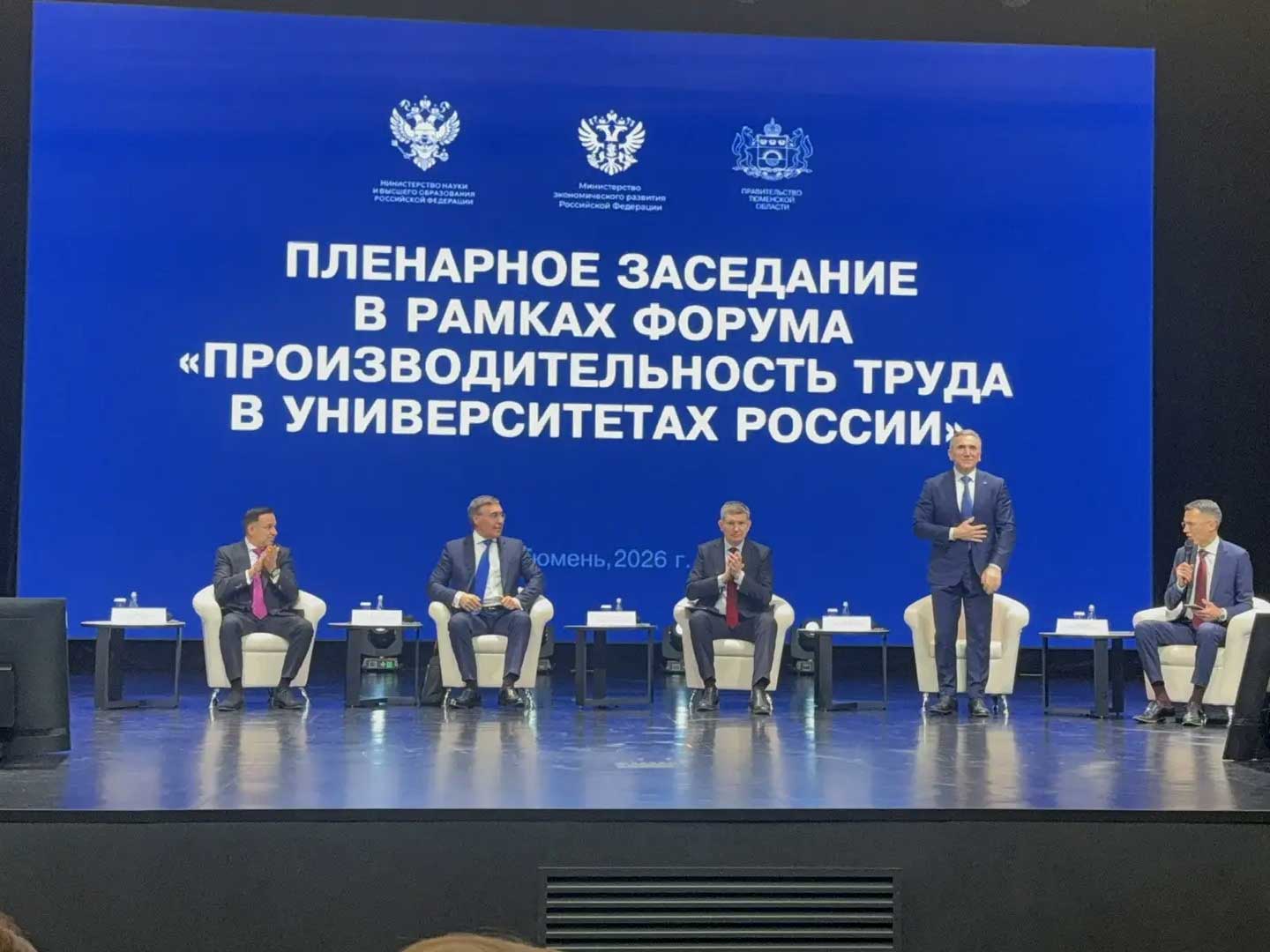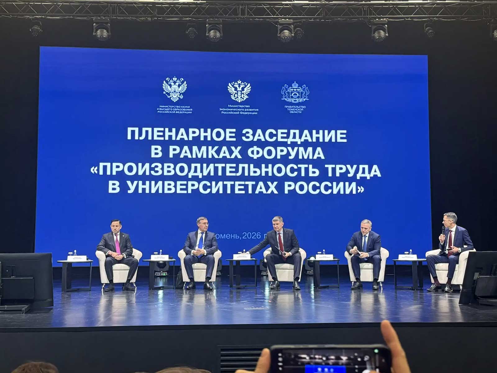 На базе Тюменского государственного университета проходит совещание, посвященное реализации федерального проекта «Производительность труда» (входит в нацпроект «Эффективная и конкурентная экономика»). В пленарном заседании принимают участие министр науки и высшего образования РФ Валерий Фальков и министр экономического развития РФ Максим Решетников.