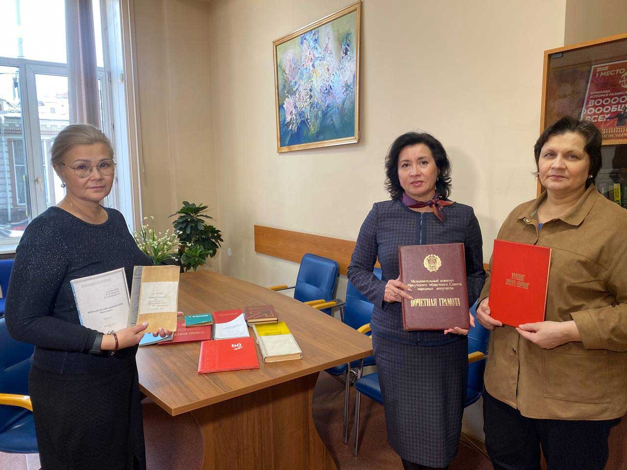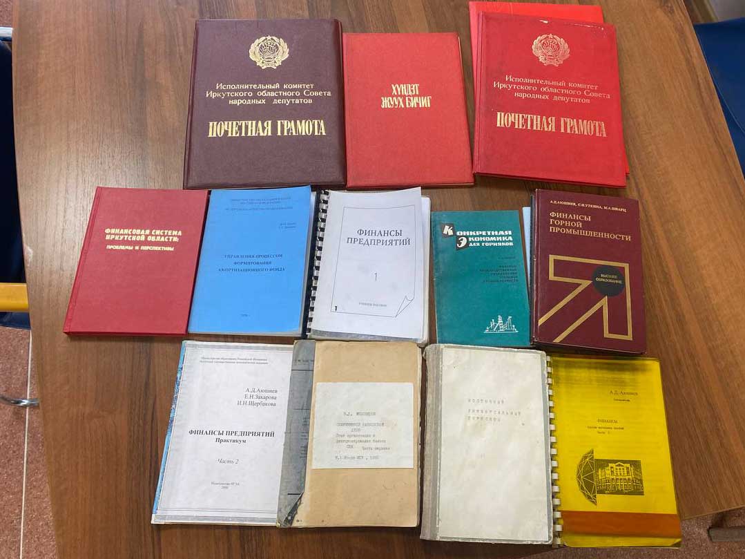 Руководство Института управления и финансов БГУ передало в фонды Научной библиотеки университета книги, учебные пособия, почетные грамоты и дипломы, принадлежавшие профессору Аюржане Дылгыровичу Аюшиеву.