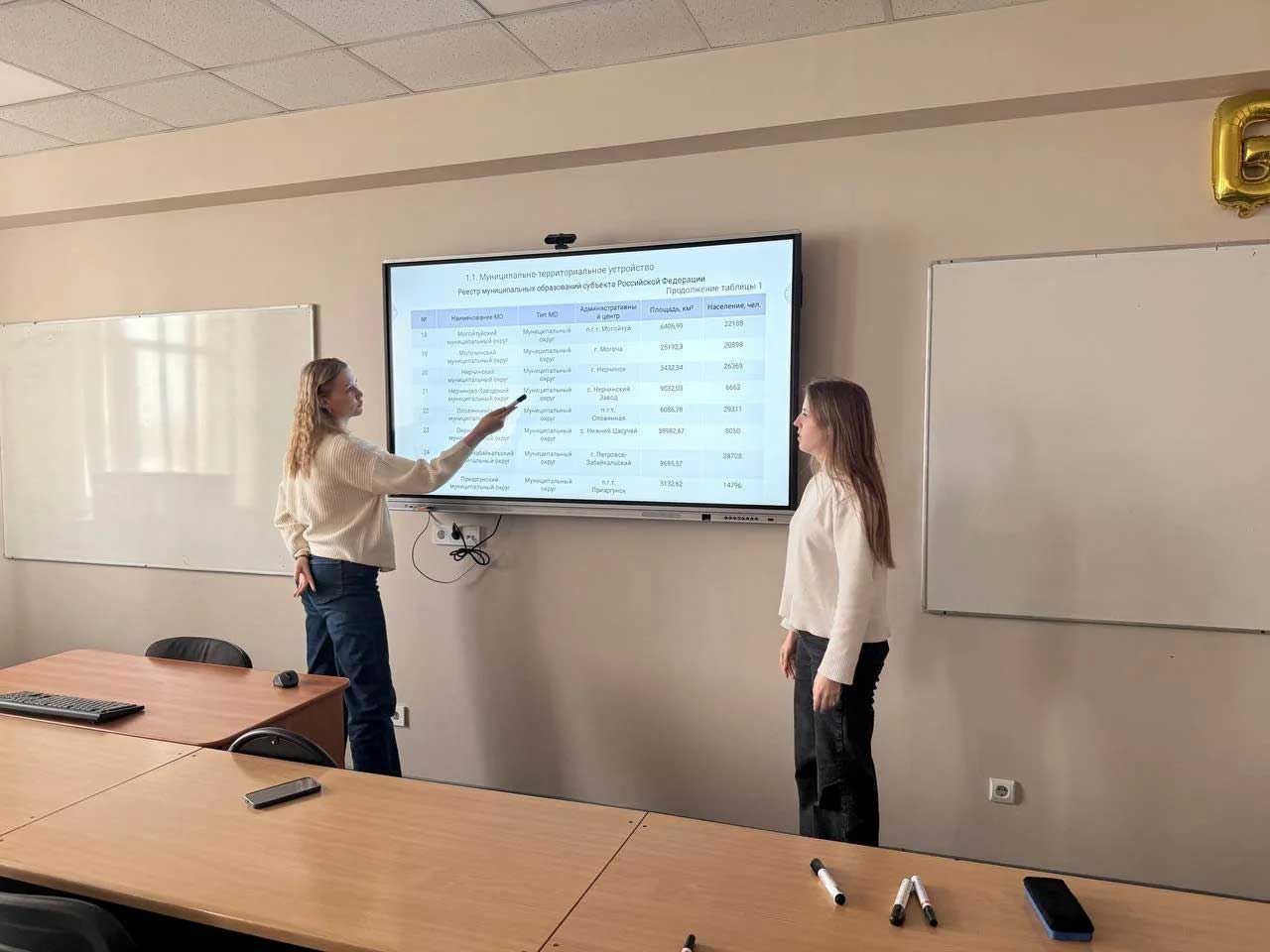Студенты, обучающиеся по направлению «Государственное и муниципальное управление» выполнили задание, разработанное Ассоциацией муниципальных образований Иркутской области. Оно было посвящено анализу местного самоуправления и пространственного развития субъектов РФ в рамках курса «Пространственное развитие городских и сельских территорий». Молодые люди работали с реальными данными Федеральной государственной информационной системы территориального планирования, Росстата и Единого портала бюджетной системы РФ.