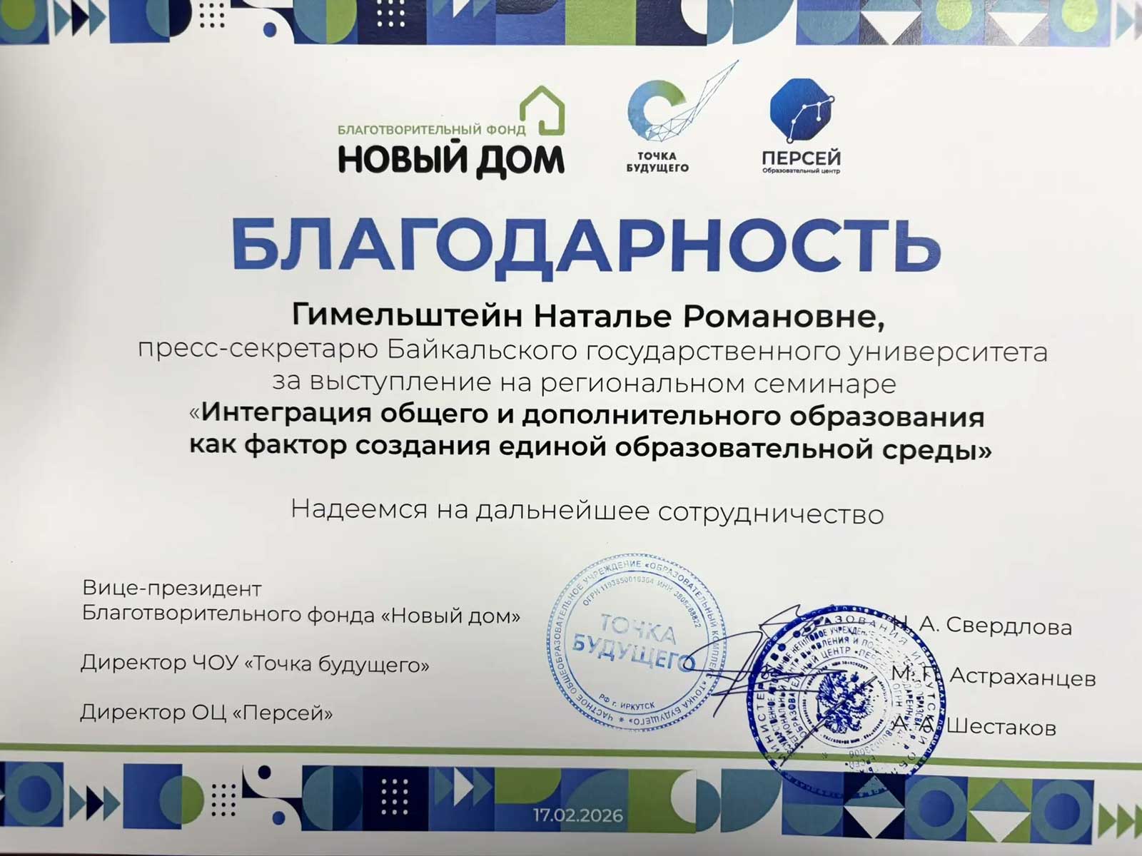 Байкальского госуниверситета Наталья Гимельштейн. В рамках