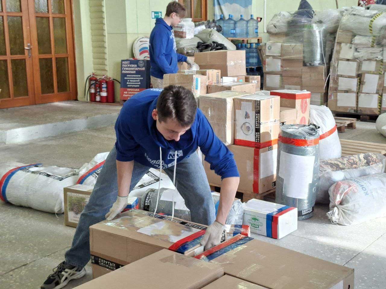 Военно-учебного центра превращают тонны гуманитарной помощи в четко