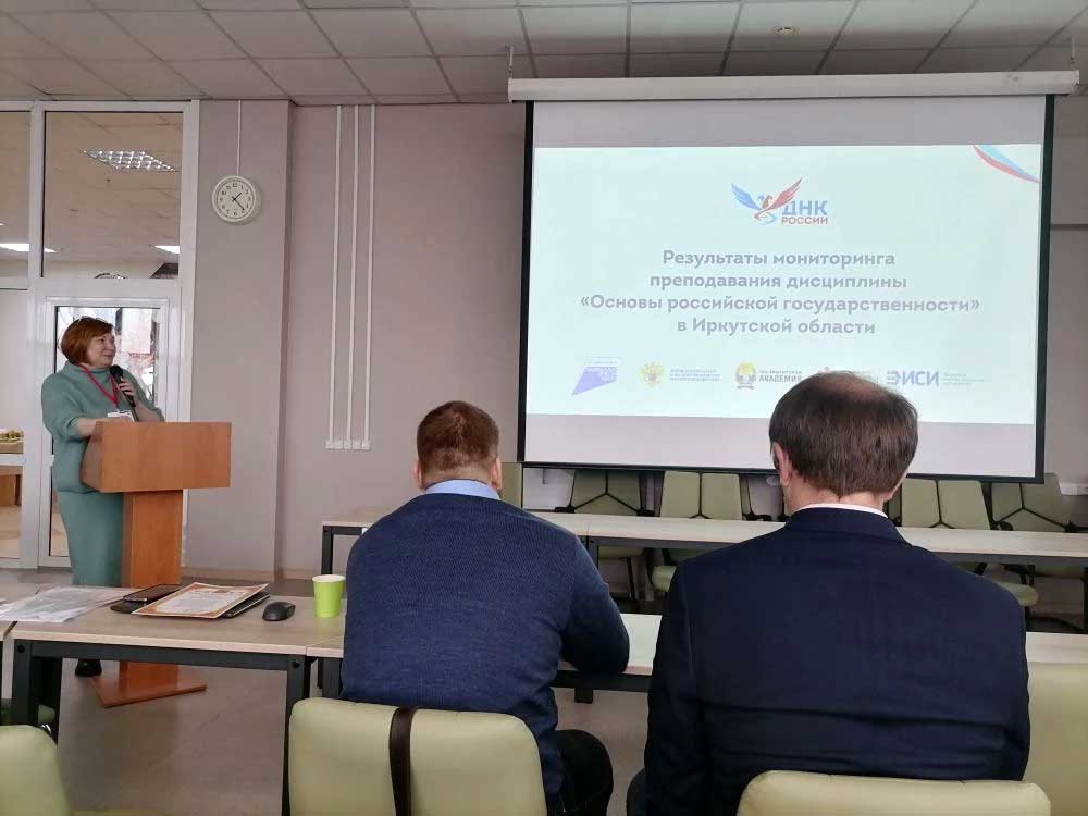 В Научной библиотеке им. В. Г. Распутина прошел круглый стол «Основы российской государственности: формирование образовательной среды», на котором, в том числе, подвели итоги мониторинга этой дисциплины среди почти 4 000 студентов из 8 вузов Иркутской области. Организатором и главными спикерами мероприятия выступили представители регионального научно-методического центра «Основы российской государственности» СФУ.