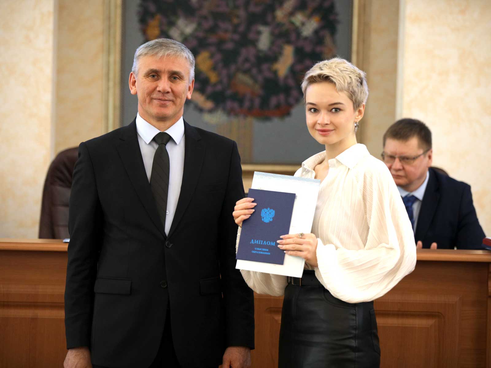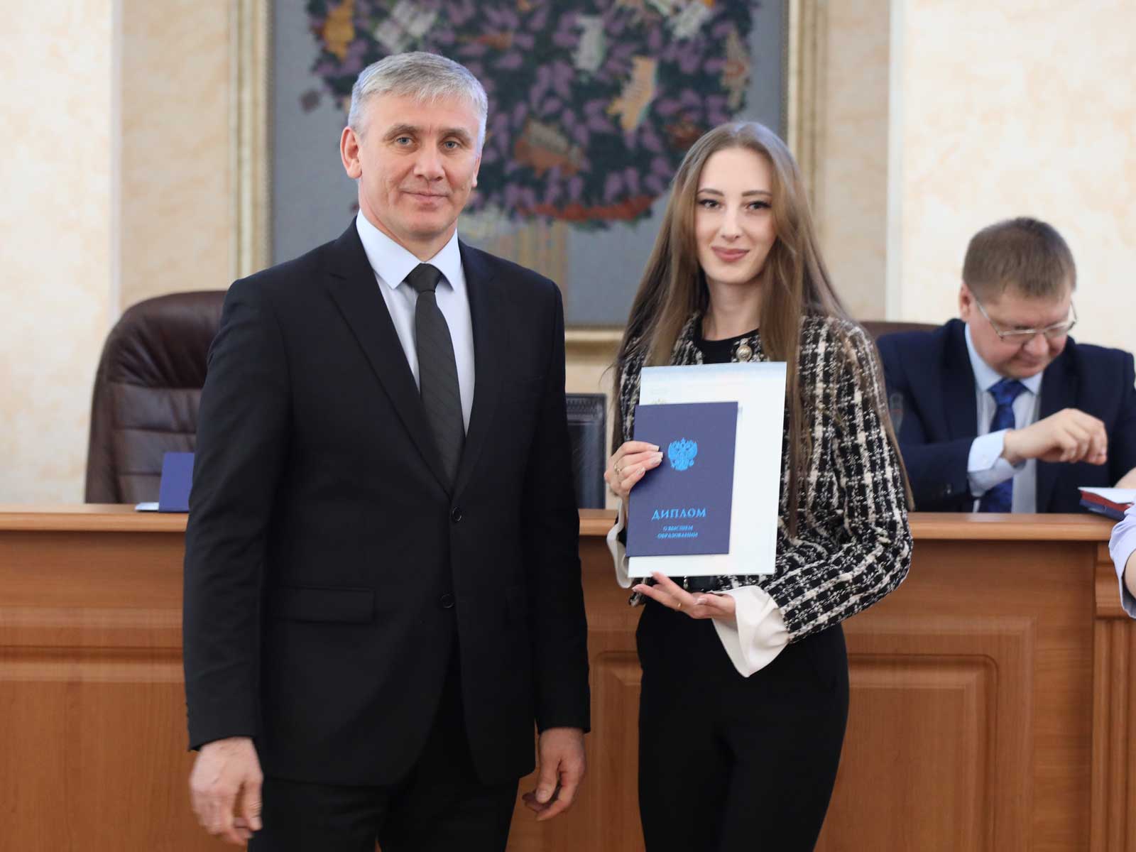 совмещая учебу с профессиональной деятельностью. На церемонии присутствовали