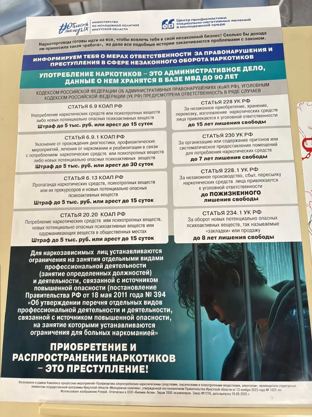 напомнить молодым людям о реальной опасности наркотиков. Систематическое
