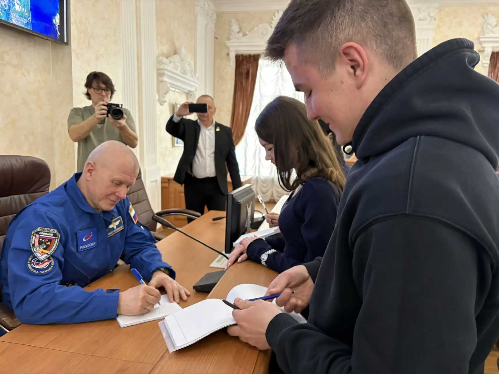Студенты и преподаватели буквально засыпали Олега Викторовича вопросами. Интересовало всё: от профессиональных качеств и подготовки к старту до бытовых нюансов питания на орбите и взаимоотношений внутри экипажа. Спрашивали о том, какой видится Земля из иллюминатора и что чувствует человек, впервые выходя в безвоздушное пространство, а также о том, как проходит долгожданная встреча с близкими после возвращения домой.