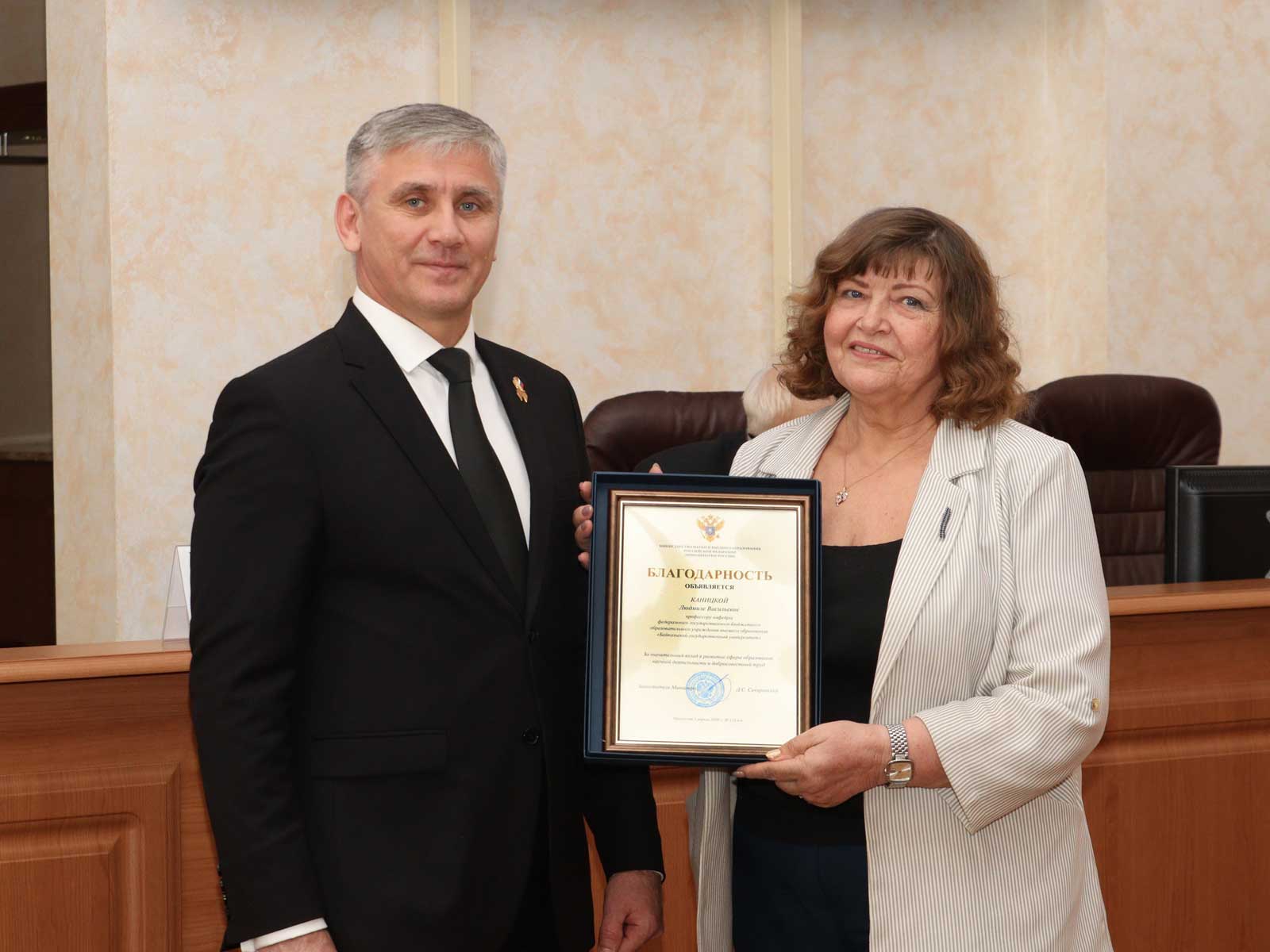 Благодарность Минобрнауки РФ была вручена профессору кафедры отраслевой