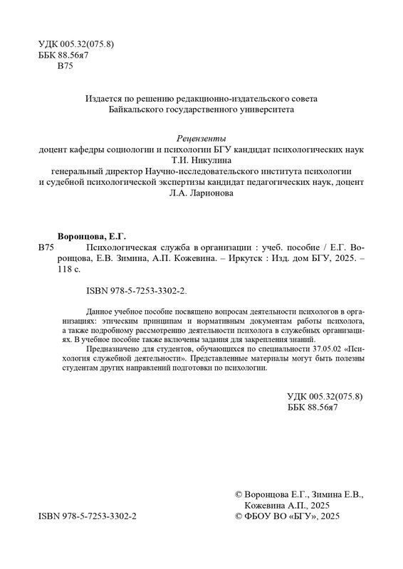 Предназначено для студентов, обучающихся по специальности 37.05.02 «Психология служебной деятельности».