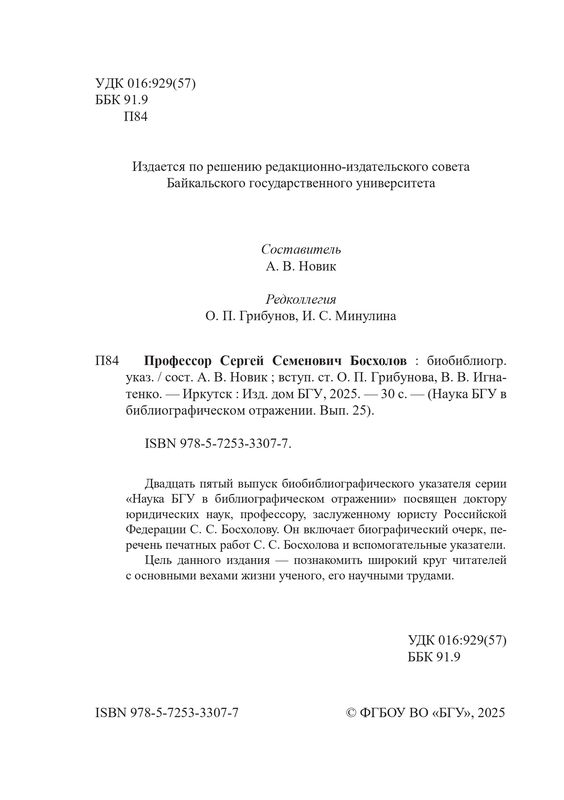 Двадцать пятый выпуск биобиблиографического указателя серии «Наука БГУ в библиографическом отражении» посвящен доктору юридических наук, профессору, заслуженному юристу Российской Федерации С.