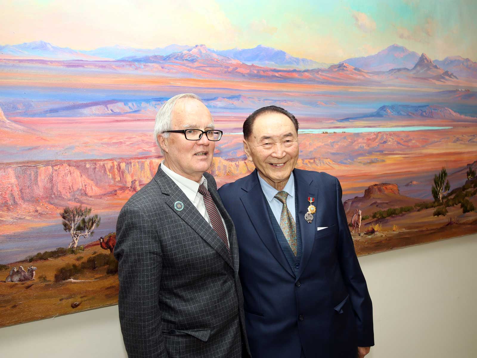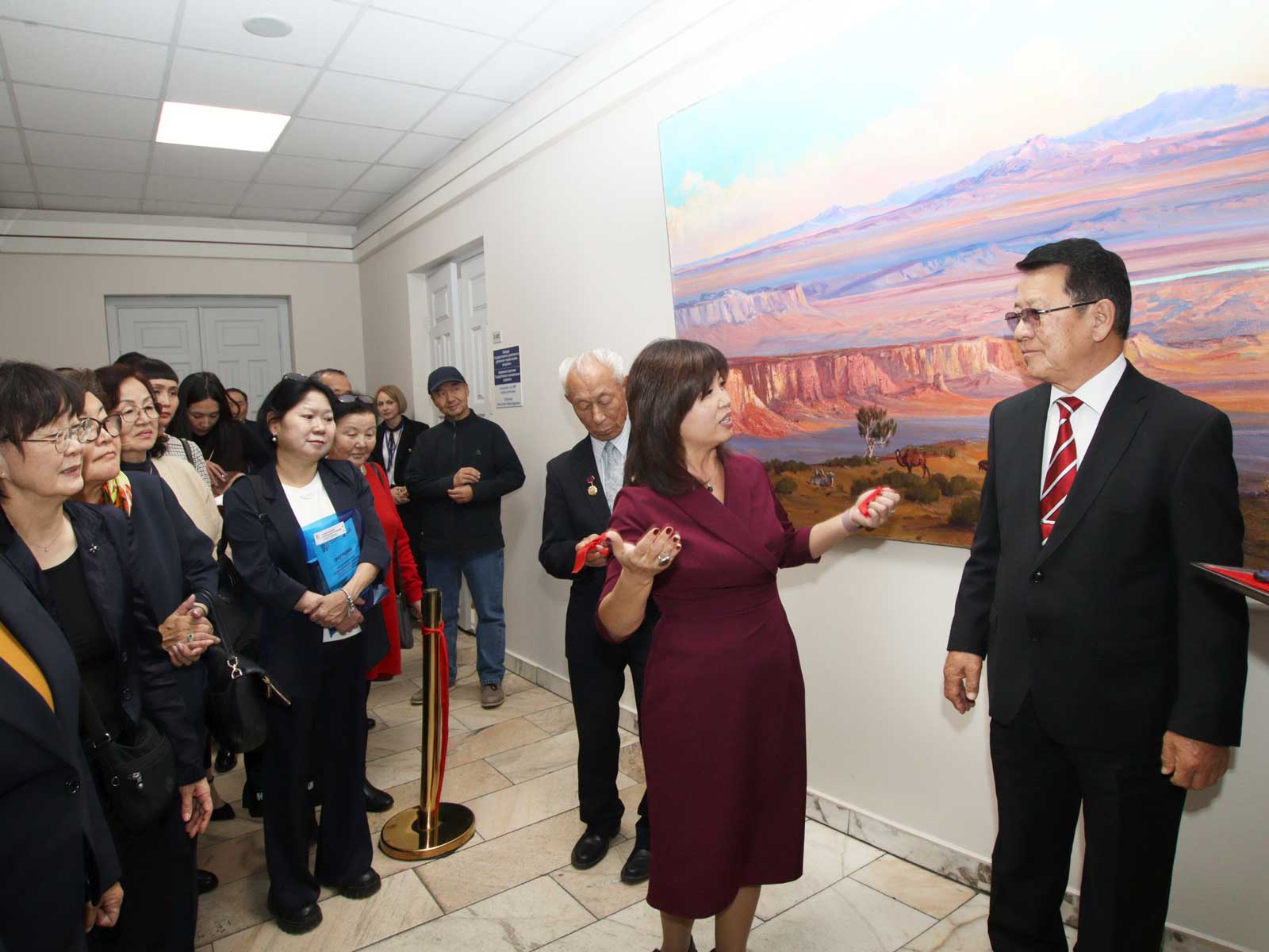 This gift to Baikal University was made by the Association of Mongolian Graduates in honor of the 95th anniversary of their native university. The size of the picture is impressive - 3.7 x 1.7 m., Canvas, oil. According to the head of the Association of Mongolian Graduates Boldbaatar Bazar, the author created the picture in the mid-1980s by order of the Ministry of Nature Management of Mongolia. After a short restoration, it was decided to take the canvas to Russia as a gift to Baikal State University.