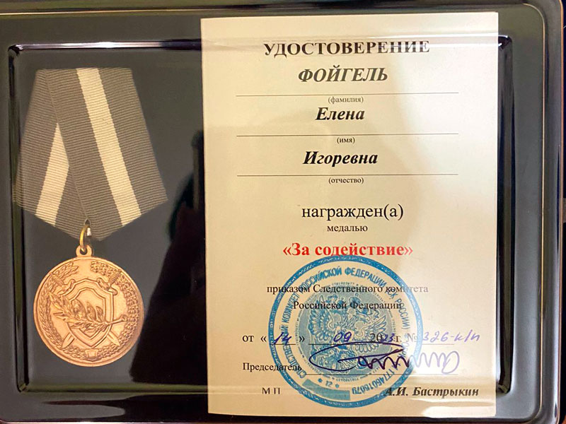 Бастрыкина награждена медалью Следственного Комитета РФ «За