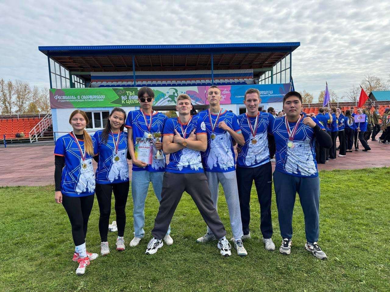 В селе Павловск Алтайского края завершилась Спартакиада студенческих отрядов СФО. В сборную от Иркутской области вошли четверо спортсменов из БГУ. Ребята соревновались во всех представленных дисциплинах, а именно: футбол, волейбол, стритбол, тактическая стрельба, CS:GO, перетягивание каната, ГТО.