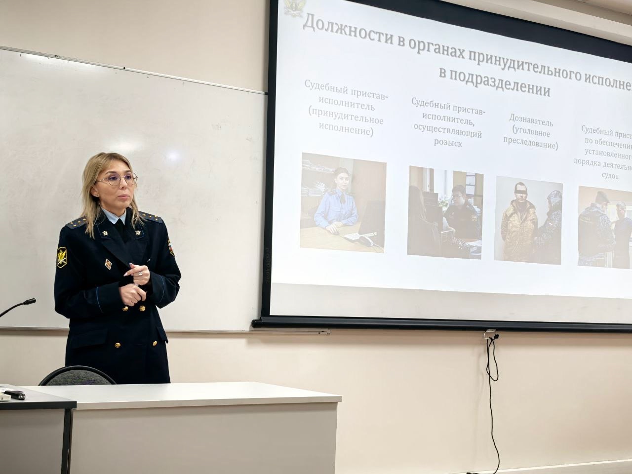 Особое внимание было уделено квалификационным и личностным требованиям к кандидатам при устройстве в ФССП. Екатерина Ивановна подробно рассказала о системе оплаты труда, включая различные надбавки и премии, о возможности карьерного роста, предоставлении льгот, социальных гарантиях для сотрудников??? и членов их семей, а также о программах обеспечения служебным жильем.