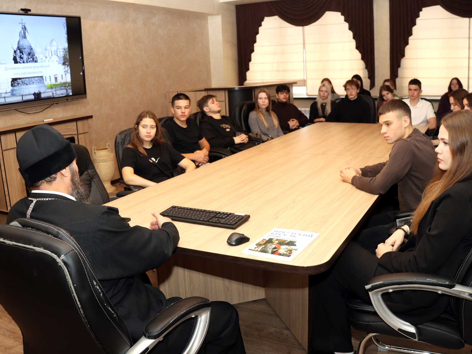 Вопросы, которые обсуждались на встрече касались истории российского государства и духовных основ каждого человека; русских национальных традиций и Русского мира. Отец Евгений подробно остановился на истории строительства Харлампиевского храма.