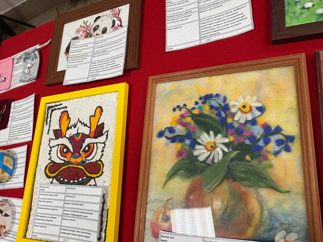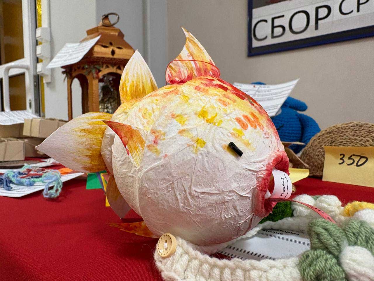 Кроме выпечки и чая гостям ярмарки предлагались изделия, изготовленные своими руками. Это были украшения, композиции из мягких игрушек, картины, выполненные в разных техниках.
