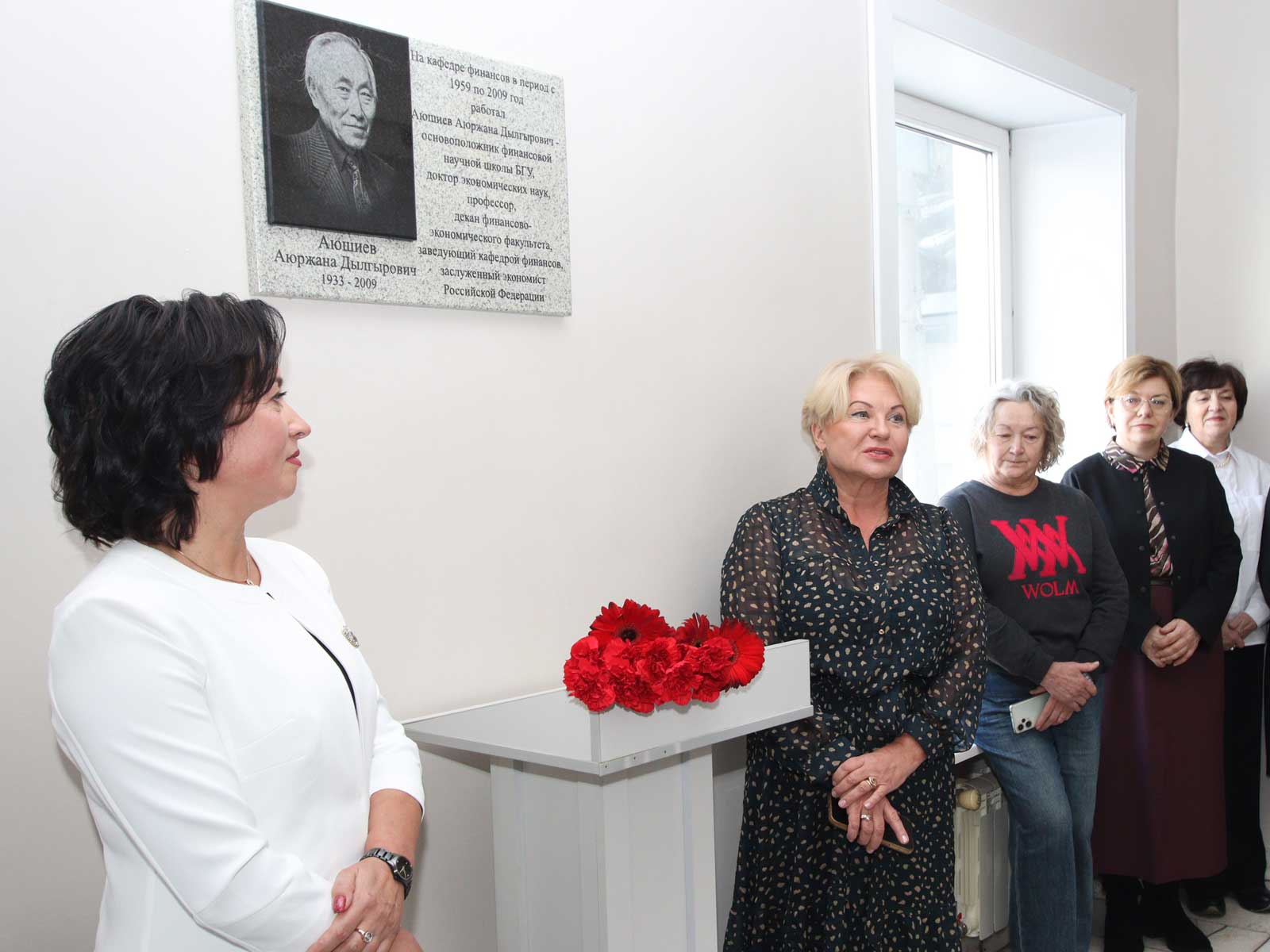 факультета БГУ, профессоре Аюржане Дылгыровиче Аюшиеве, у кафедры установлена