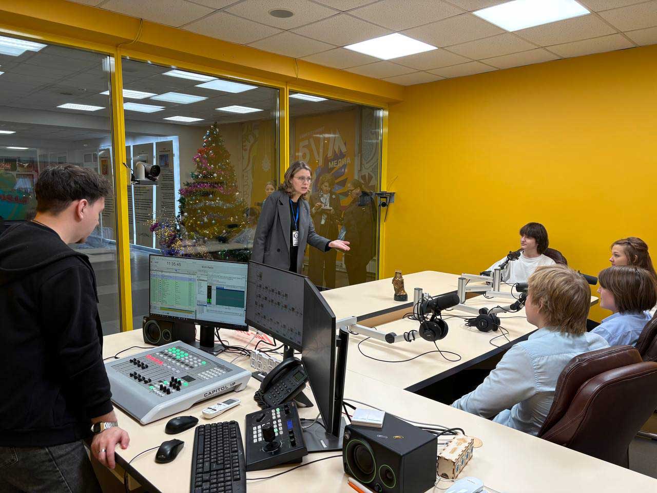 попробовать себя в роли телеведущего в студии Медиацентра. Часть школьников в
