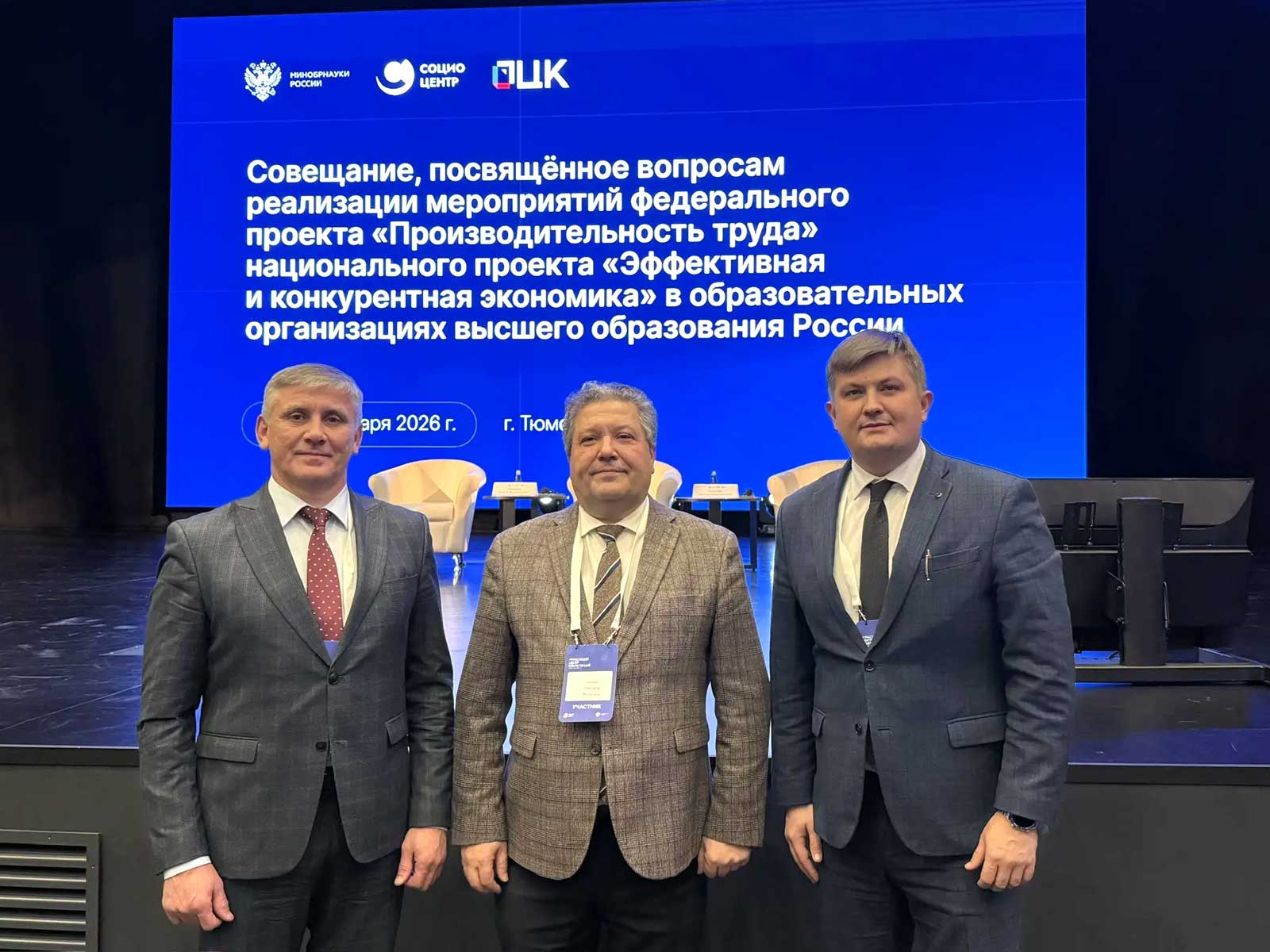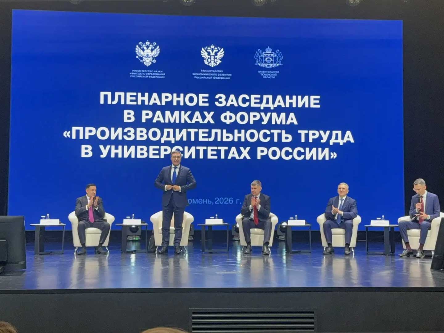 На базе Тюменского государственного университета проходит совещание, посвященное реализации федерального проекта «Производительность труда» (входит в нацпроект «Эффективная и конкурентная экономика»). В пленарном заседании принимают участие министр науки и высшего образования РФ Валерий Фальков и министр экономического развития РФ Максим Решетников.