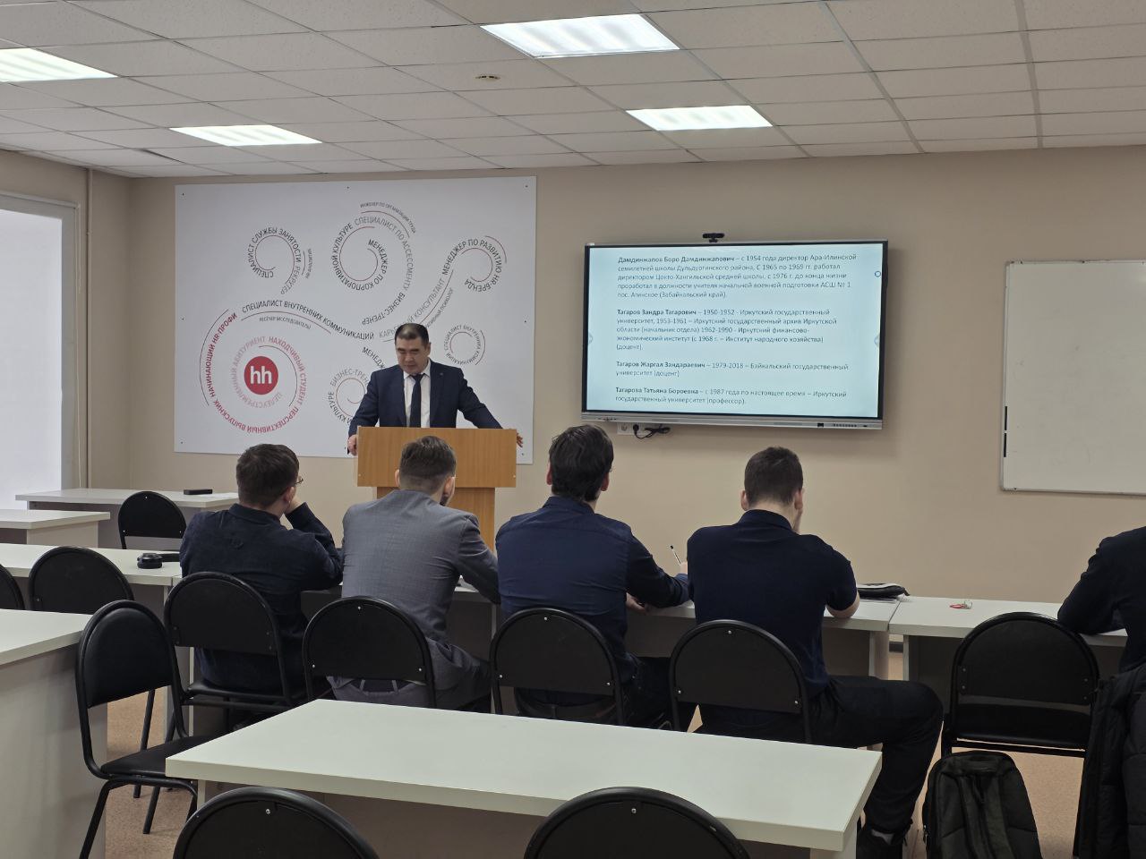 Бато Тагаров рассказал о своей семье (дедушке по отцу и своем отце, работавшим в нашем вузе), объяснил ребятам причины данного жизненного выбора и преимущества профессии преподавателя и ученого