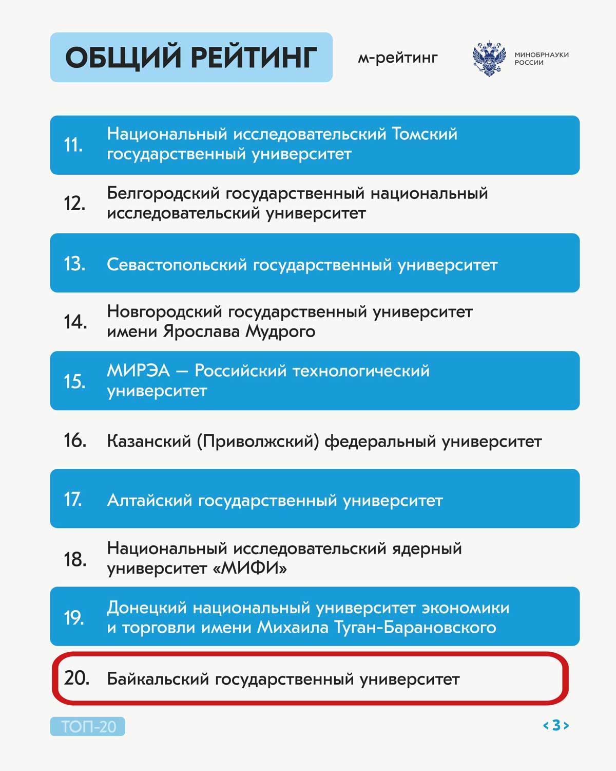 Таким образом, учитывая все данные, БГУ вошёл в двадцатку лидеров вузов