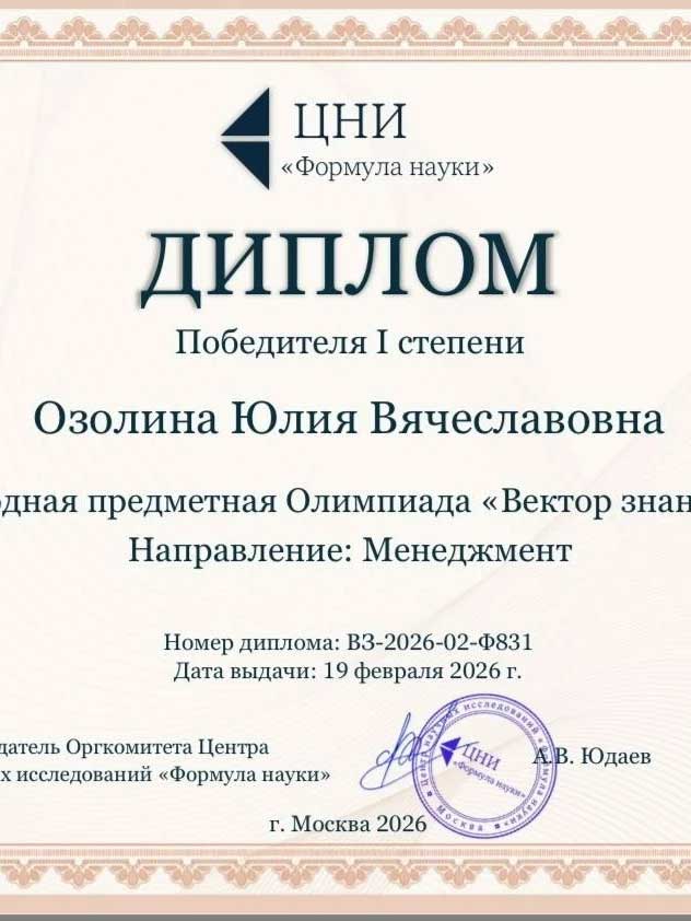 знаний — 2026» (направление «Менеджмент»)
