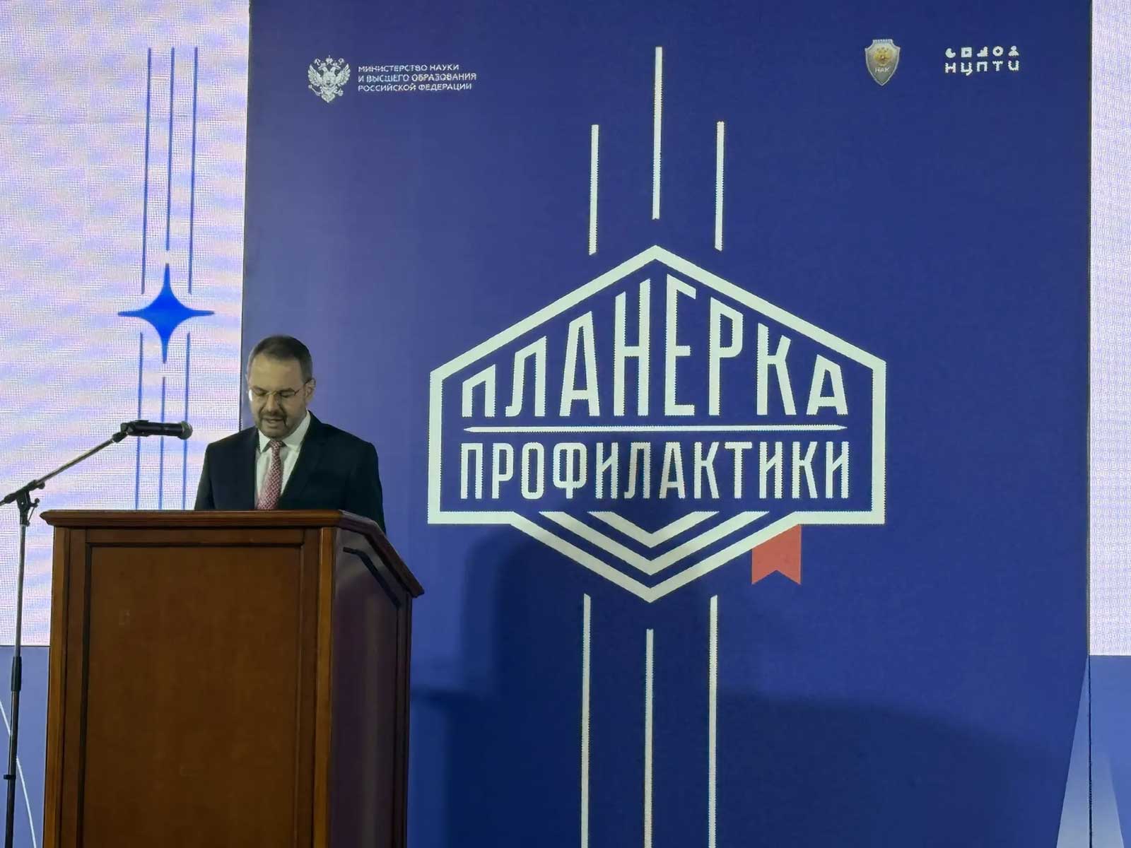 Всероссийский межведомственный форум «Планёрка профилактики» — ключевое событие в сфере противодействия идеологии терроризма в образовательной среде проводится Минобрнауки России уже в четвертый раз. В форуме приняли участие представители национального антитеррористического комитета, Министерства внутренних дел. Собравшихся приветствовал заместитель министра науки и высшего образования РФ Константин Могилевский, который обозначил основные направления работы форума.