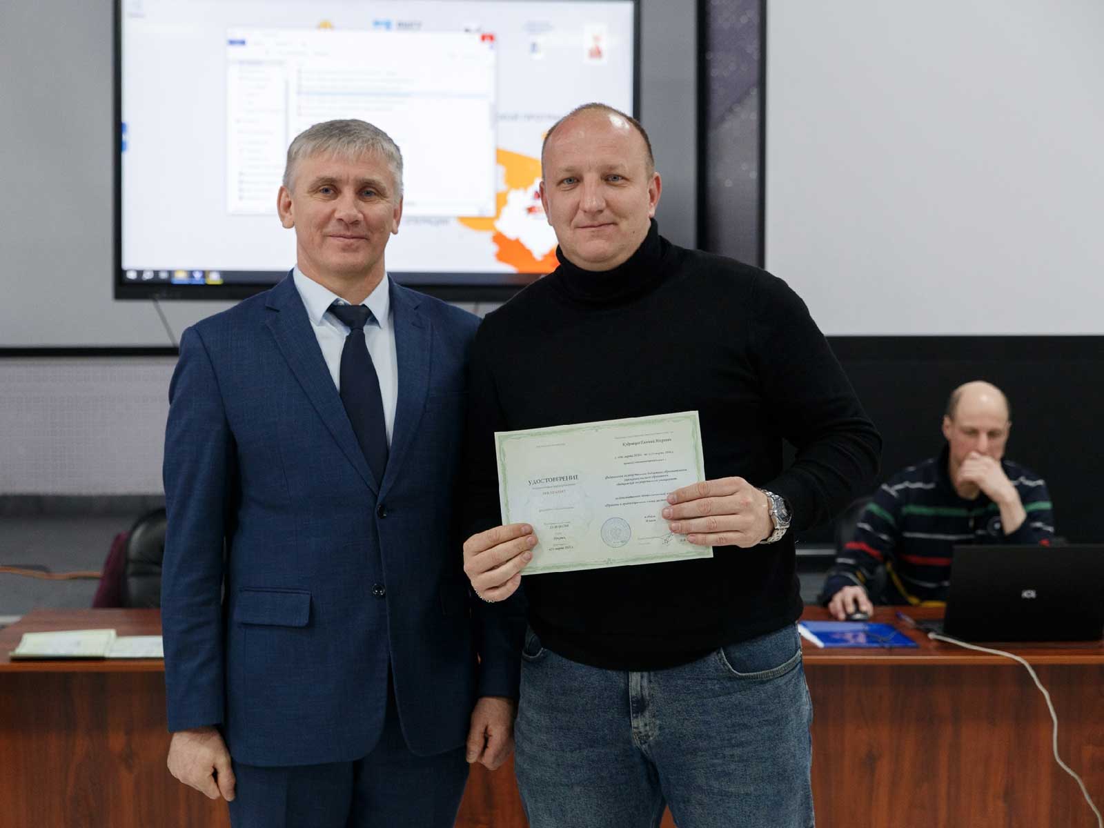 Грибунов. Он вручил им удостоверения о повышении квалификации по