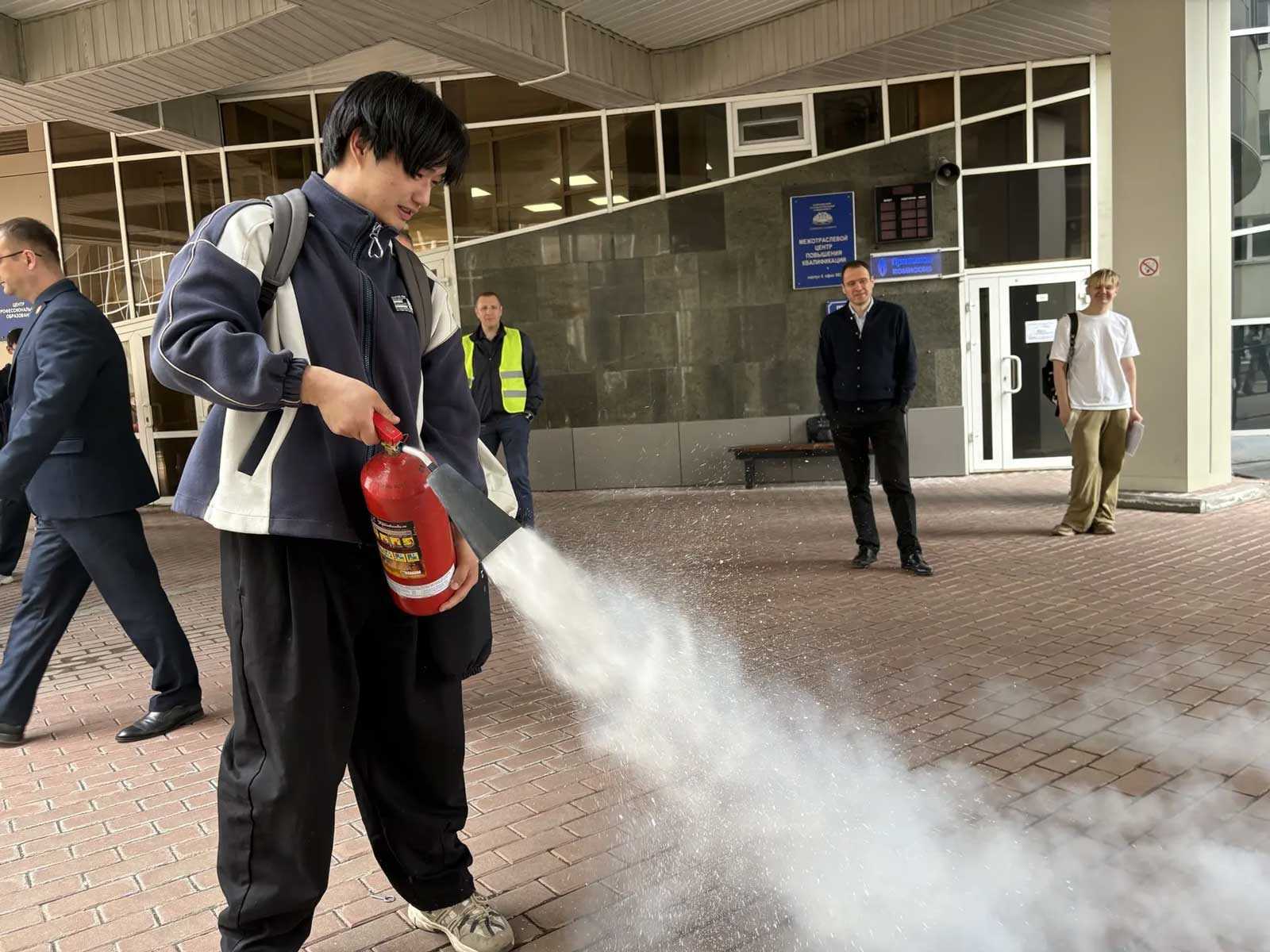 огнетушителями, а студенты смогли лично опробовать их в действии.